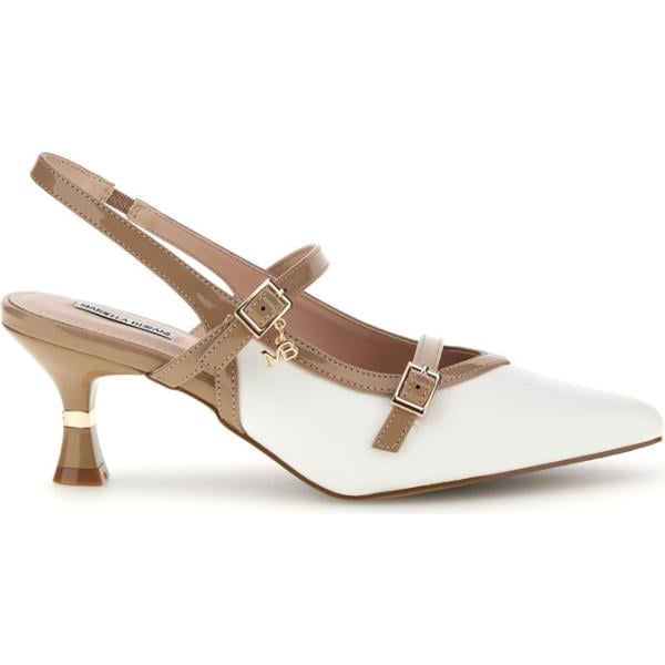 Décolleté da donna in bianco neve con tacco a punta con cinturino