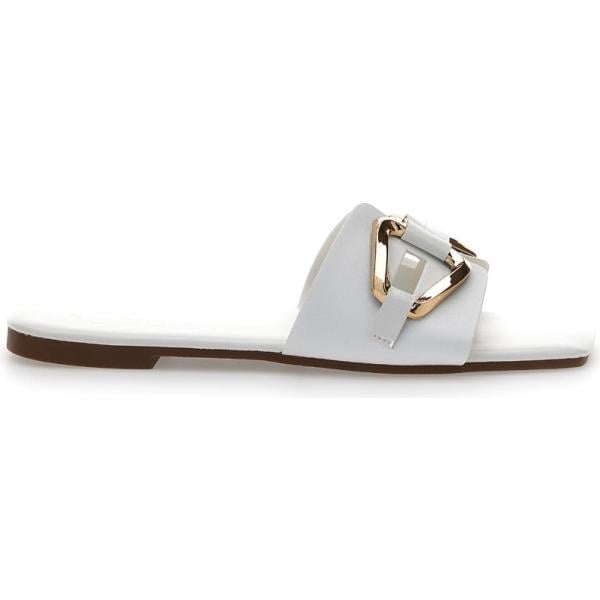 Ciabatte da donna a fascia in bianco neve con fibbia