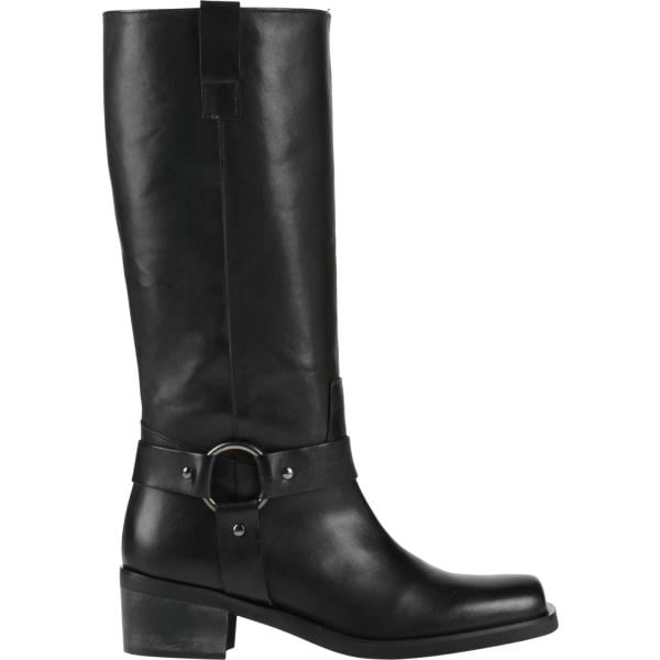 Stivali da donna in nero pece con tacco squadrato a punta quadrata in pelle