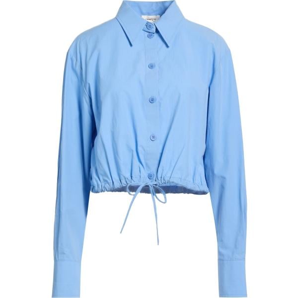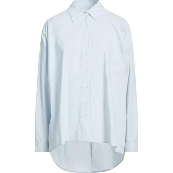 Camicia da donna oversize in azzurro collo classico a maniche lunghe con bottoni in cotone