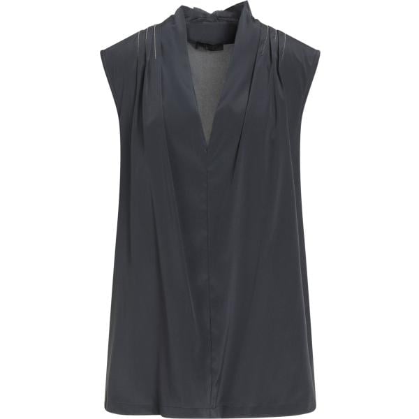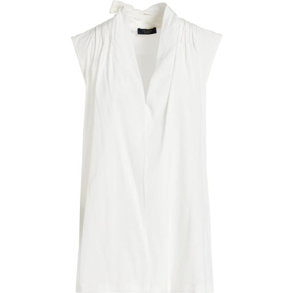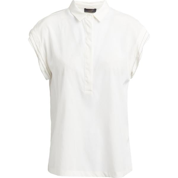 Top da donna in bianco neve a maniche corte con bottoni in seta