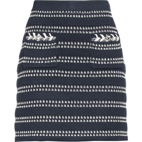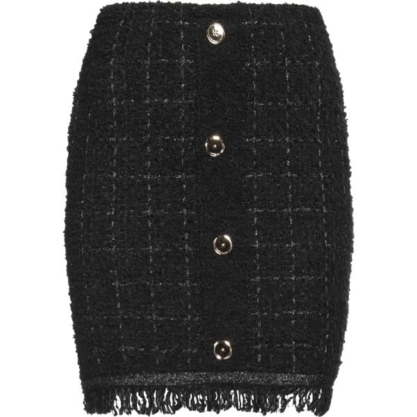 Minigonna da donna in nero pece a quadri effetto laminato corto in lana