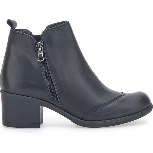 Stivaletti da donna in nero pece con tacco con zip in pelle