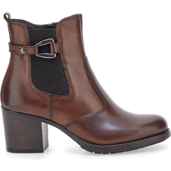 Stivaletti da donna in marrone scuro con tacco con cinturino in pelle