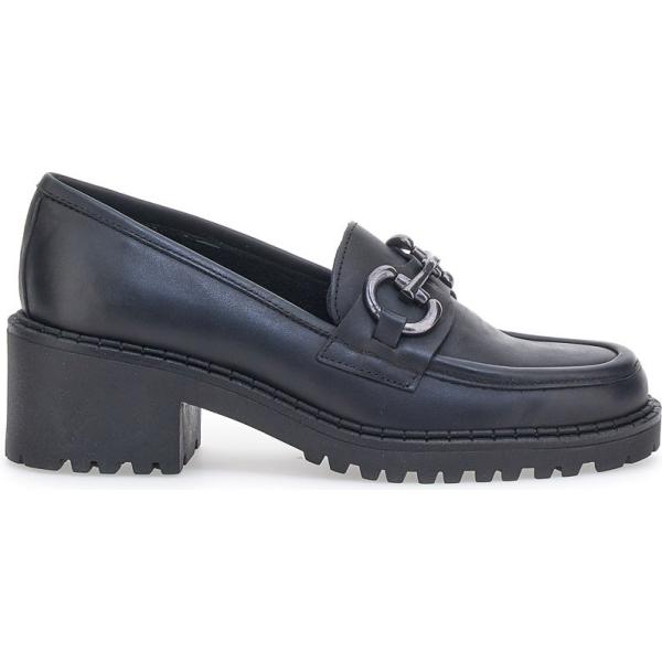 Mocassini da donna in grigio scuro con tacco lungo in pelle