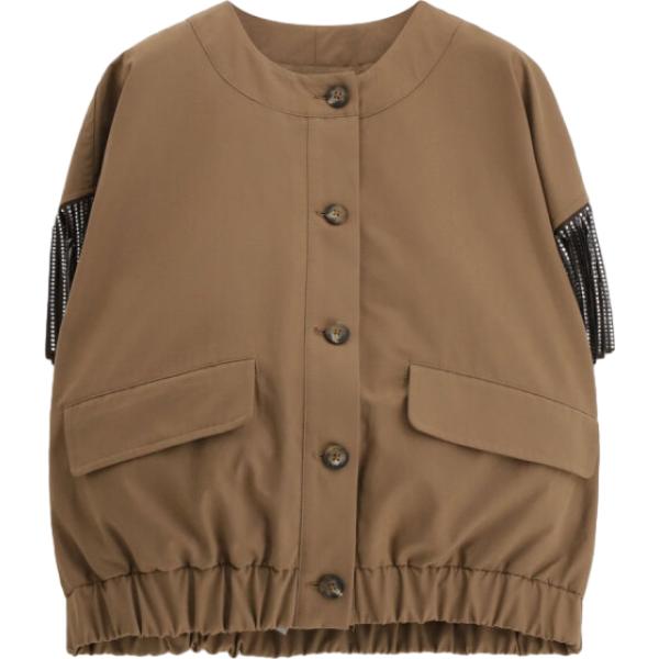 Gilet da donna in marrone scuro con frange corto
