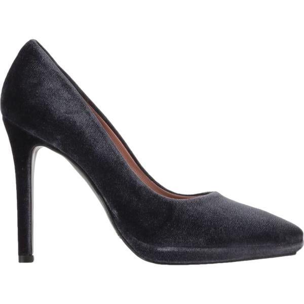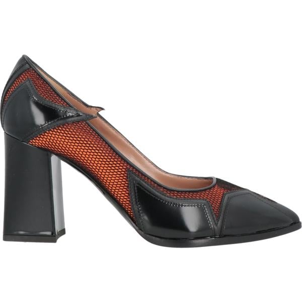 Décolleté da donna in nero pece con tacco squadrato a punta in pelle