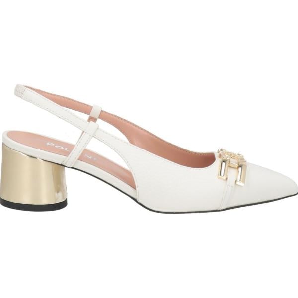 Décolleté da donna in bianco neve con tacco a punta slingback in metallo