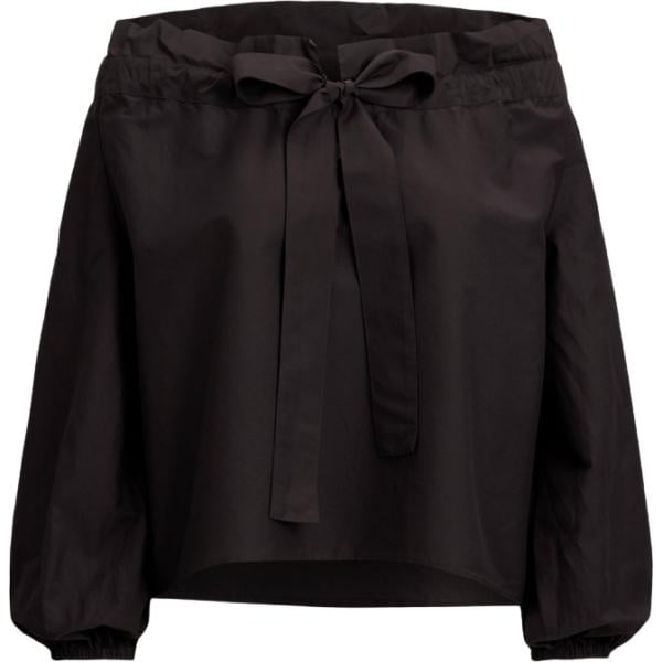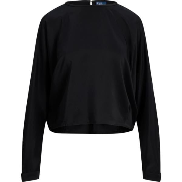 Blusa da donna con drappeggio in nero pece in seta