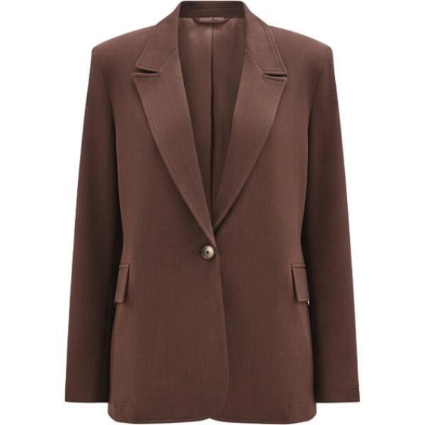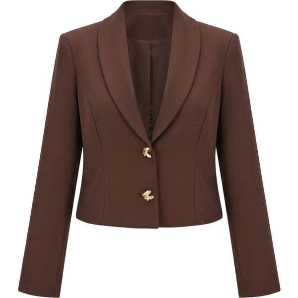 Giacca da donna in marrone scuro collo a v monopetto con bottoni