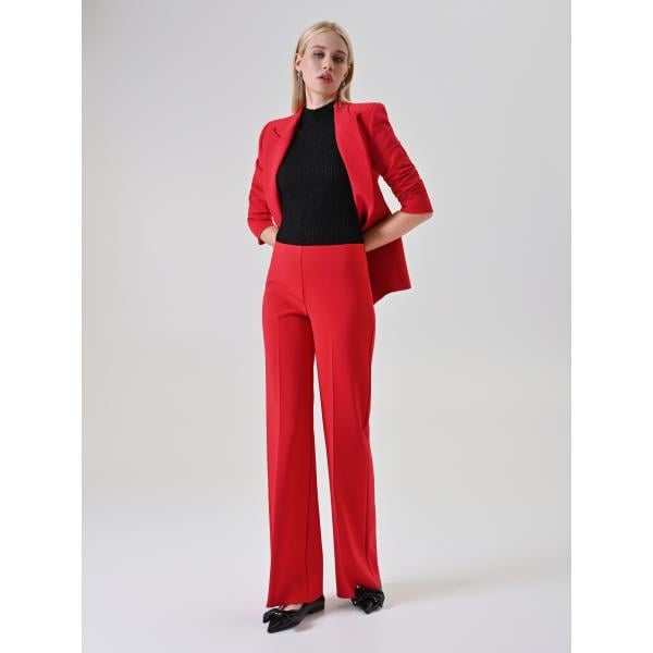 Pantaloni a palazzo da donna in rosso classico a vita alta con zip