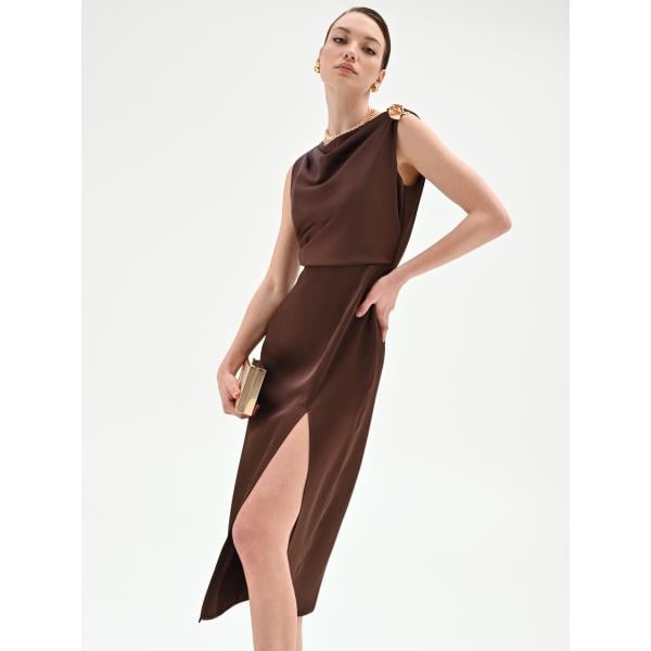 Vestito asimmetrico da donna in bordeaux con scollo con zip
