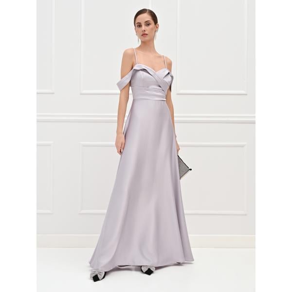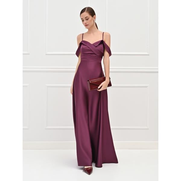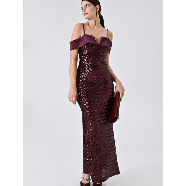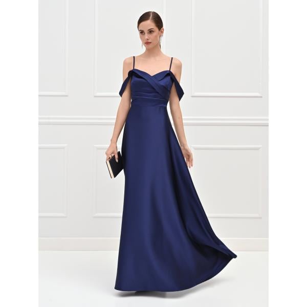 Vestito lungo da donna in blu scuro con spalline lungo con zip