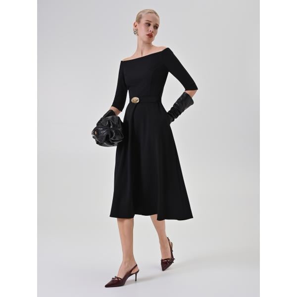 Vestito longuette/midi da donna in nero pece con scollo con zip