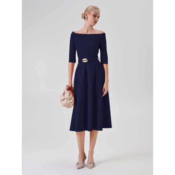 Vestito longuette/midi da donna in blu scuro con tacco spillo con spacco a maniche corte