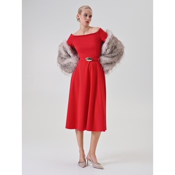 Vestito longuette/midi da donna in rosso classico con scollo con zip in metallo