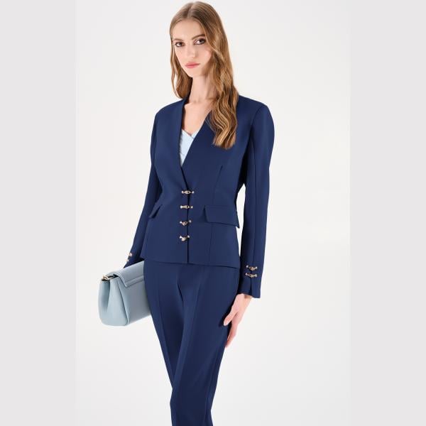 Giacca da donna in blu scuro collo con revers monopetto con bottoni