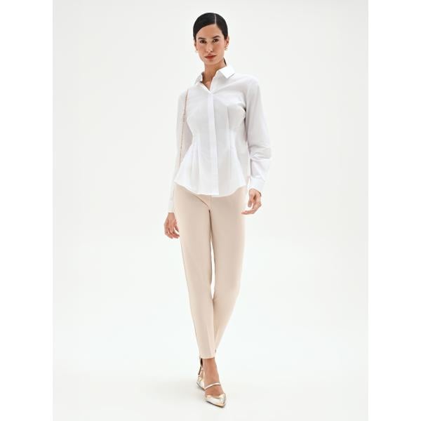 Pantaloni skinny da donna in beige sabbia a vita media con zip