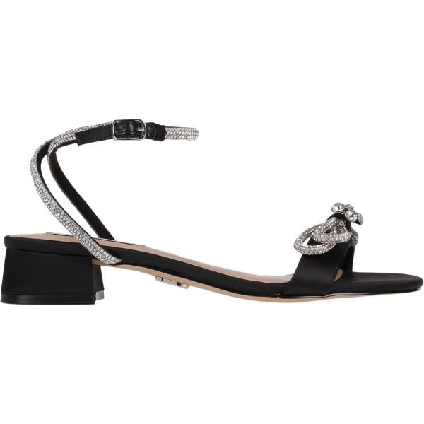 Sandali con tacco da donna in nero pece con tacco a punta tonda