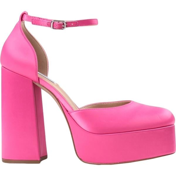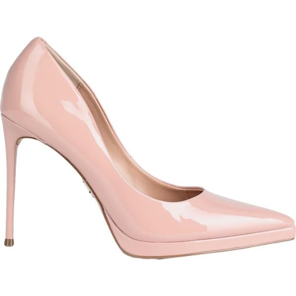 Décolleté da donna in rosa scuro effetto vernice con tacco squadrato a punta con cinturino