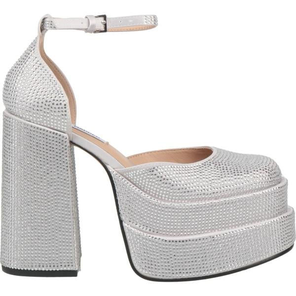 Décolleté da donna in bianco neve con glitter con tacco spillo a punta con cinturino