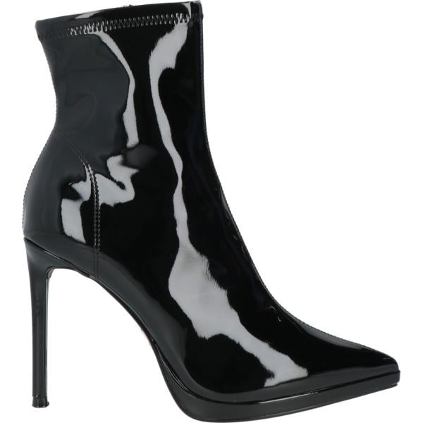 Stivaletti da donna in nero pece effetto vernice con tacco spillo a punta con zip