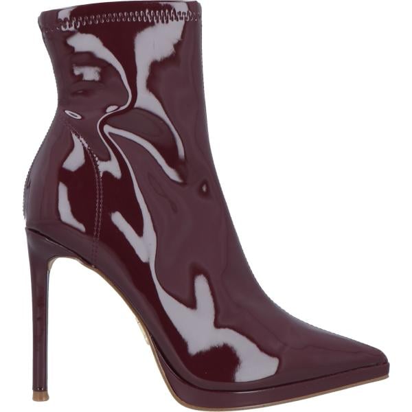 Stivaletti da donna in marrone scuro effetto vernice con tacco spillo a punta con zip