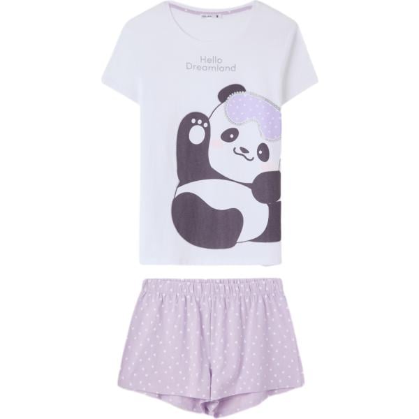 Pigiama da donna in bianco neve con stampe girocollo a maniche corte in cotone