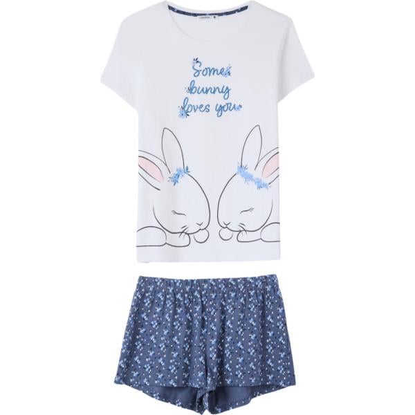 Pigiama da donna in bianco neve con stampe girocollo completo a maniche corte in cotone