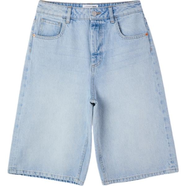 Bermuda da donna in azzurro a vita alta con zip in cotone