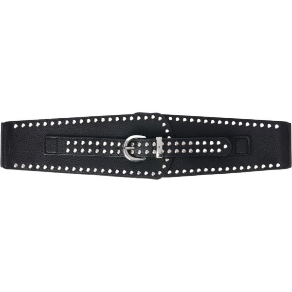 Cintura da donna in nero pece con borchie lungo con fibbia in poliestere
