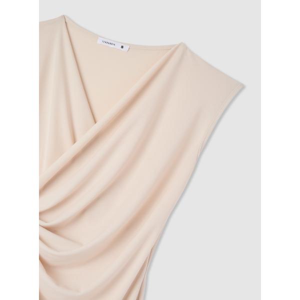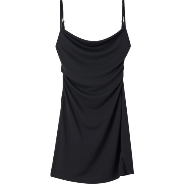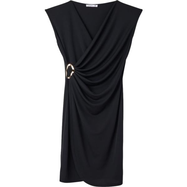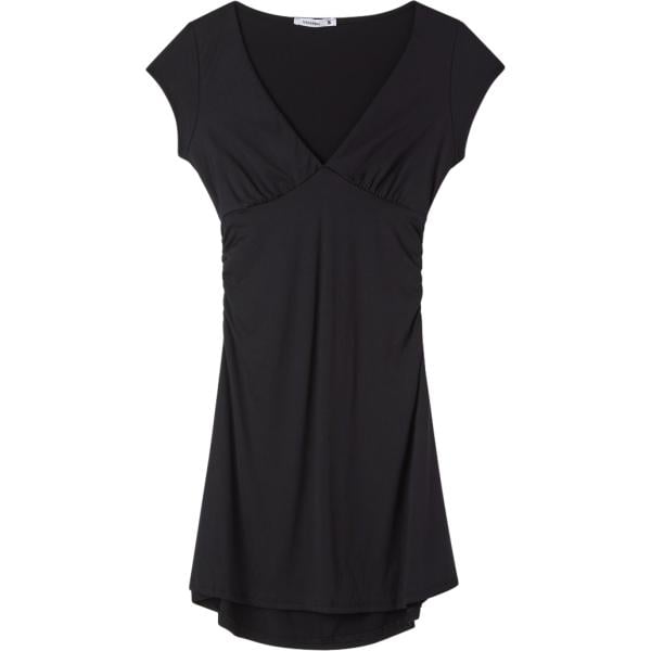 Vestito corto da donna in nero pece con ruches con scollo corto senza maniche in viscosa