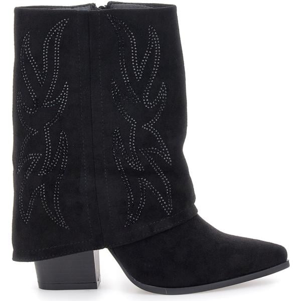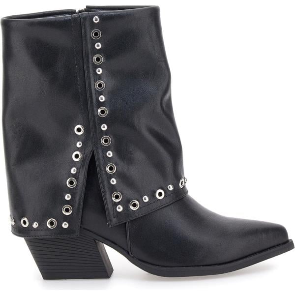 Stivaletti texani da donna in grigio scuro con borchie con tacco