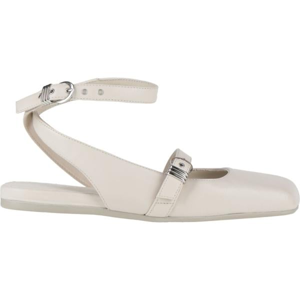 Ballerine da donna in bianco neve senza tacco a punta quadrata con cinturino in pelle