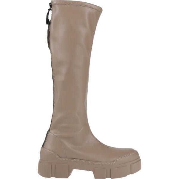 Stivali da donna in bianco avorio effetto scamosciato con tacco squadrato a punta tonda in pelle
