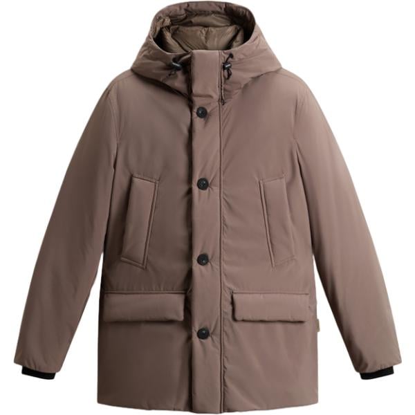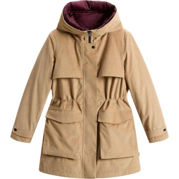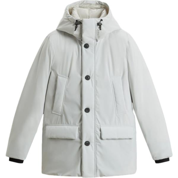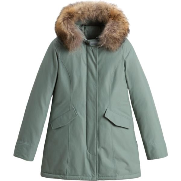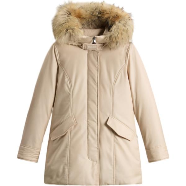 Parka da donna in grigio chiaro collo con cappuccio con zip in in ecopelliccia