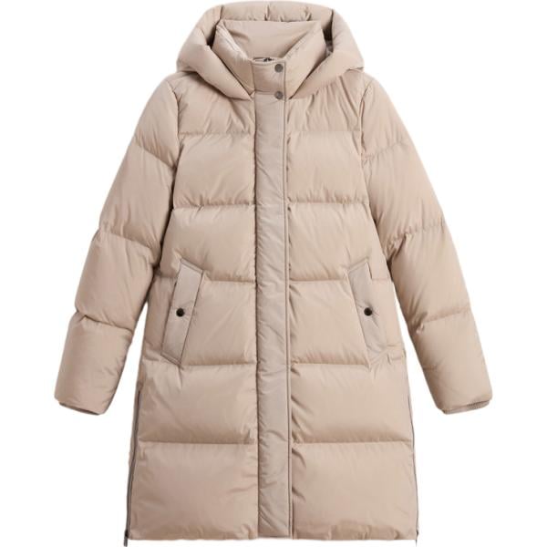 Piumino da donna in nero pece collo con cappuccio tessuto impermeabile con zip