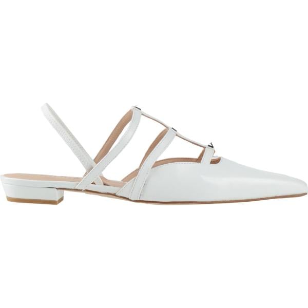 Ballerine da donna in bianco neve con borchie a punta slingback in pelle