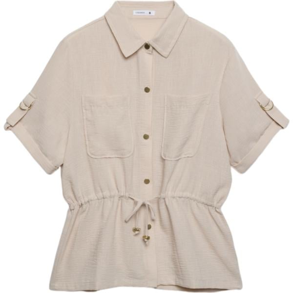 Camicia a maniche corte da donna in bianco avorio collo a punta corto senza maniche a vita alta con bottoni in viscosa Terranova