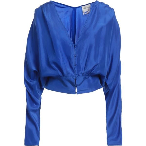 Camicia da donna con drappeggio in blu scuro con stampe Lauren