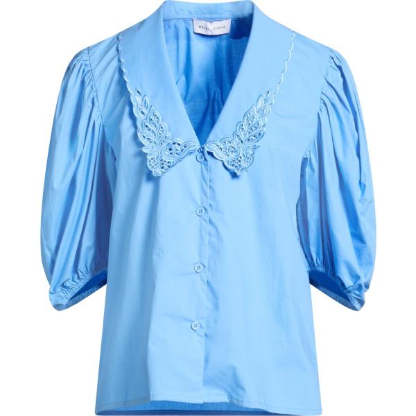Camicia da donna in azzurro a fiori collo classico a maniche lunghe con bottoni in viscosa Rag & Bone