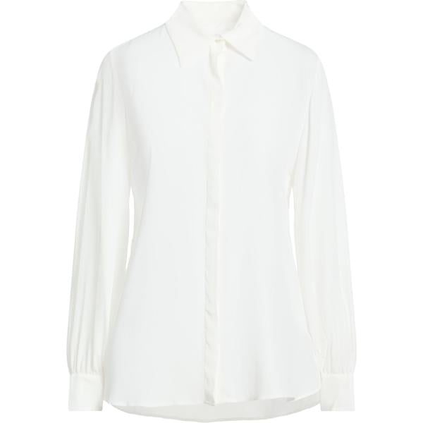 Camicia da donna in bianco avorio a righe collo classico a maniche lunghe con bottoni Please