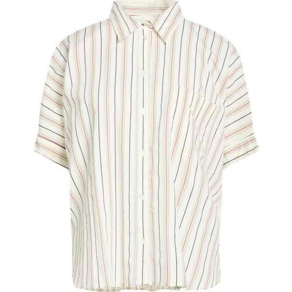 Lasciati coccolare da questa camicia vivace e versatile. Con il suo motivo a righe e dettagli stampati, aggiungerà un tocco di freschezza al tuo guardaroba quotidiano. Le maniche lunghe e il colletto classico le conferiscono un'aria casual ma curata, perfetta per le avventure urbane e le giornate di lavoro.