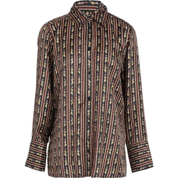 Camicia chiffon fantasia cachemire brand logo collo classico maniche lunghe chiusura con bottoni 100% Poliestere