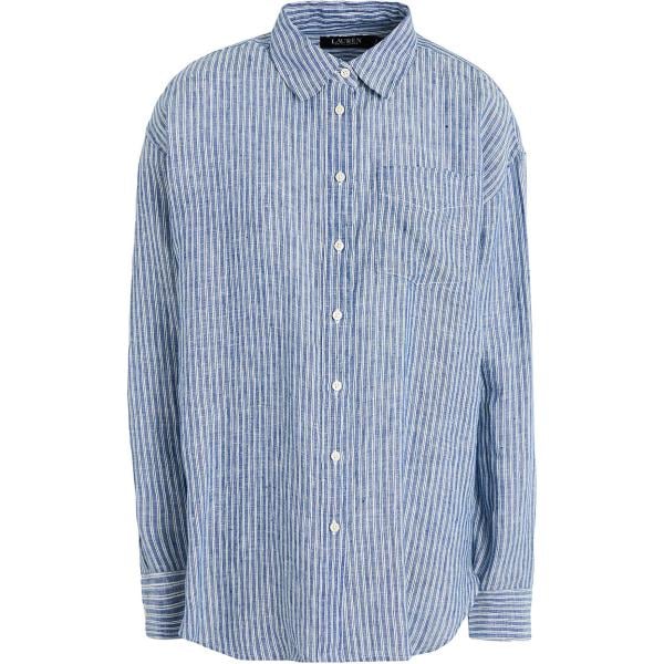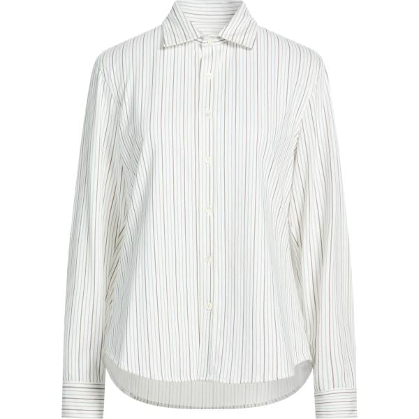 Camicia da donna in grigio scuro a righe collo classico a maniche lunghe a punta con bottoni in denim Rinascimento