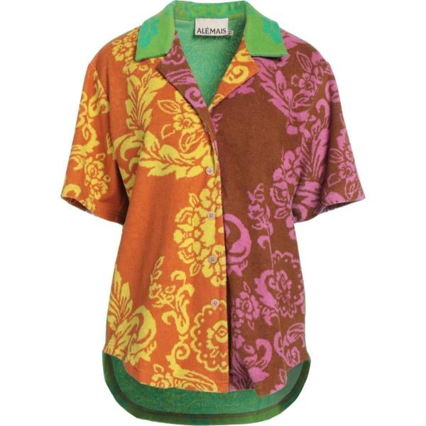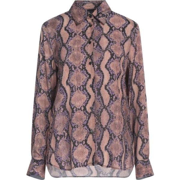 Camicia da donna in marrone scuro a righe con fiocco made in italy a vita alta con bottoni in cotone Rinascimento
