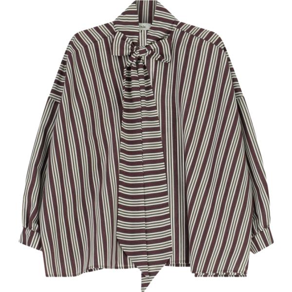 Camicia da donna a righe con fiocco lungo a maniche lunghe