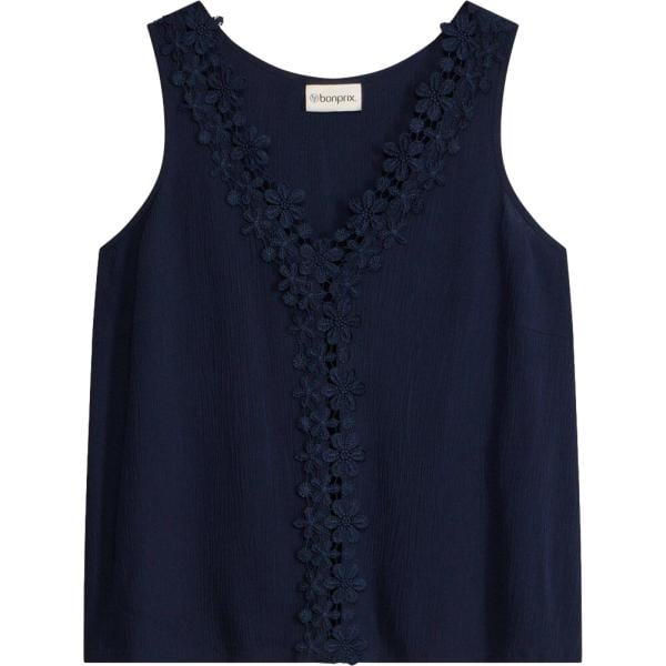 Canottiera da donna in azzurro con stampe collo alto senza maniche Rinascimento
