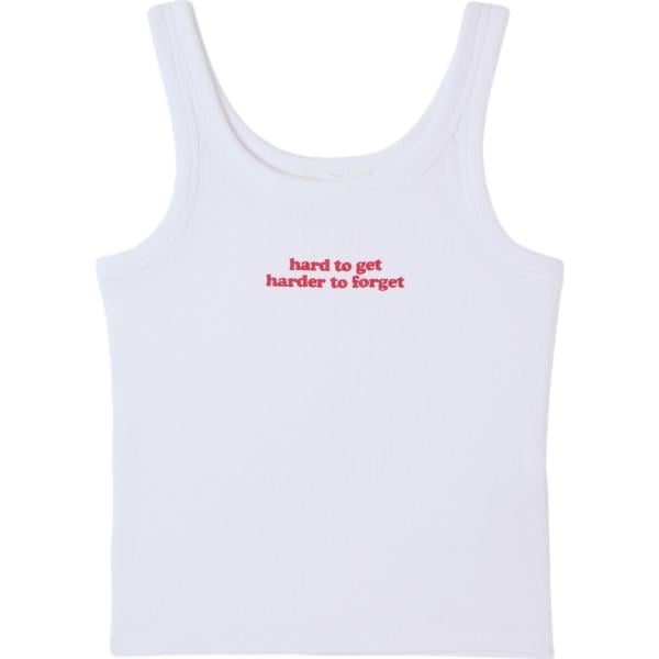 Canotta da donna aderente con lavorazione a costine, perfetta per valorizzare la silhouette con un tocco casual e femminile. Il design è arricchito da una scritta ricamata sul petto che aggiunge un dettaglio distintivo. Ideale da abbinare a jeans o gonne a vita alta per un look quotidiano versatile, perfetta per il tempo libero o per completare outfit a strati con giacche leggere.