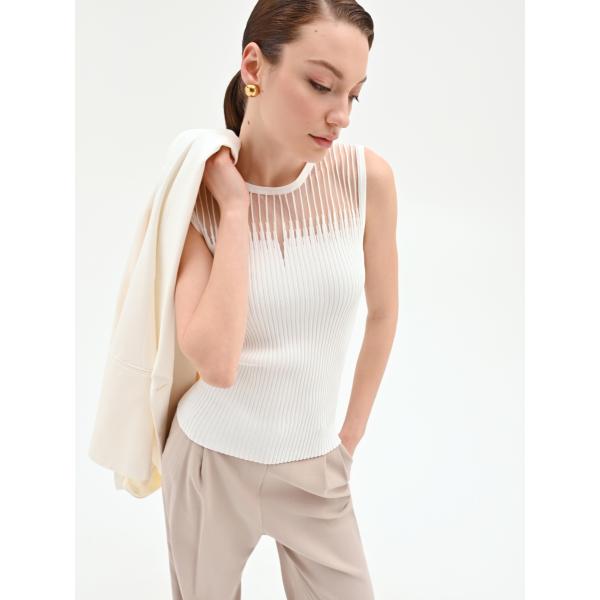 Canottiera da donna in bianco avorio a righe girocollo senza maniche in viscosa